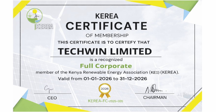 Techwin Limited Joins Kenya Renewable Energy Association(KEREA): Advancing Sustainable Processing Through Renewable Energy Integration.